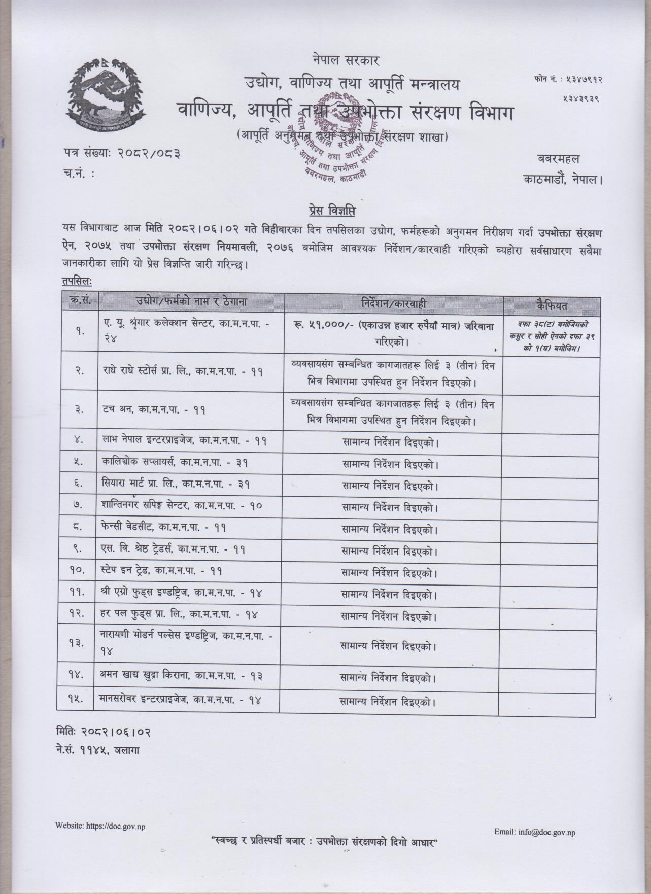 मिति २०८२।०६।०८ गते बुधबार को बजार अनुगमन प्रतिवेदन