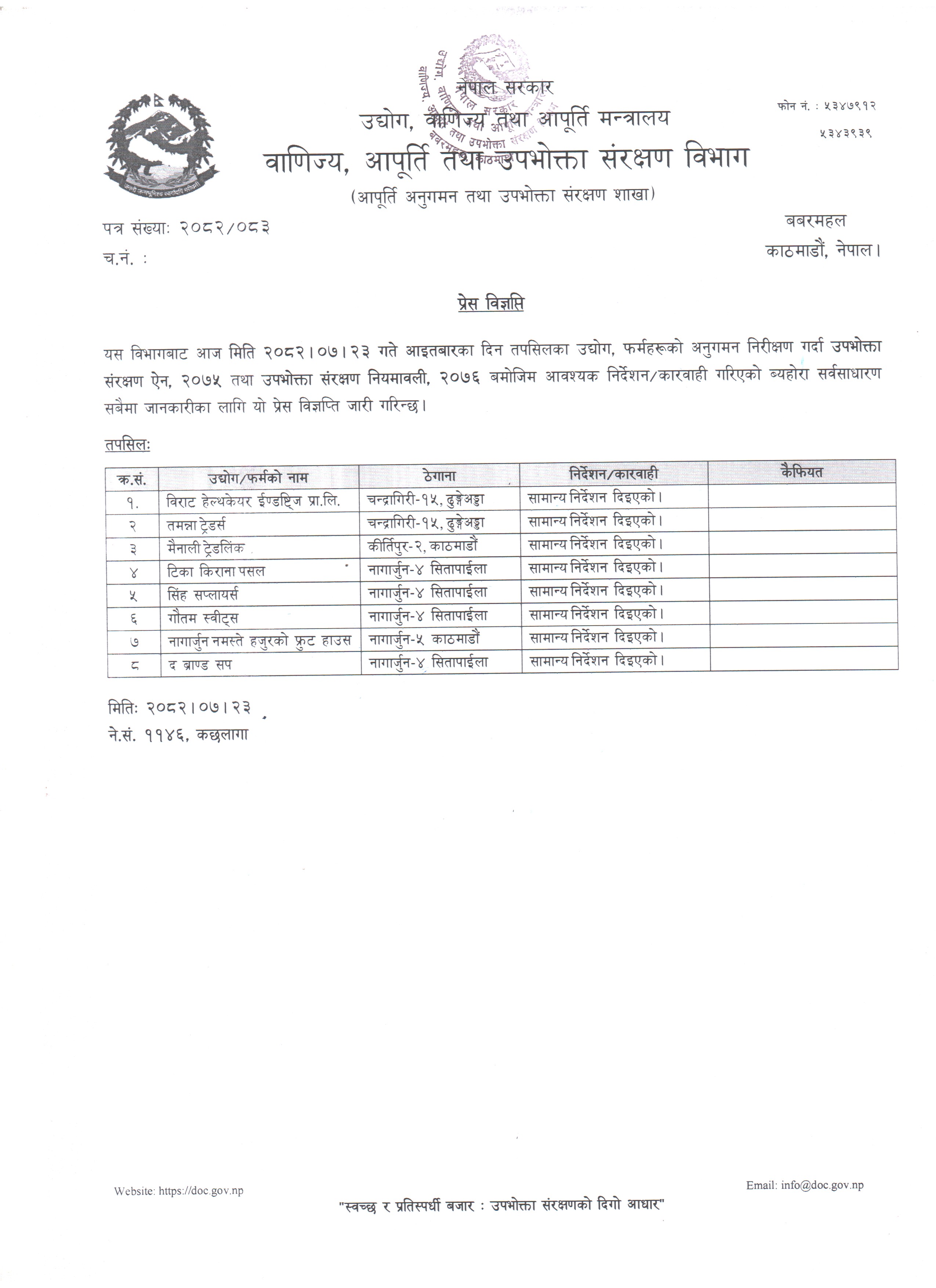 अनुगमन प्रेस विज्ञप्ति २०८२।०७।२३