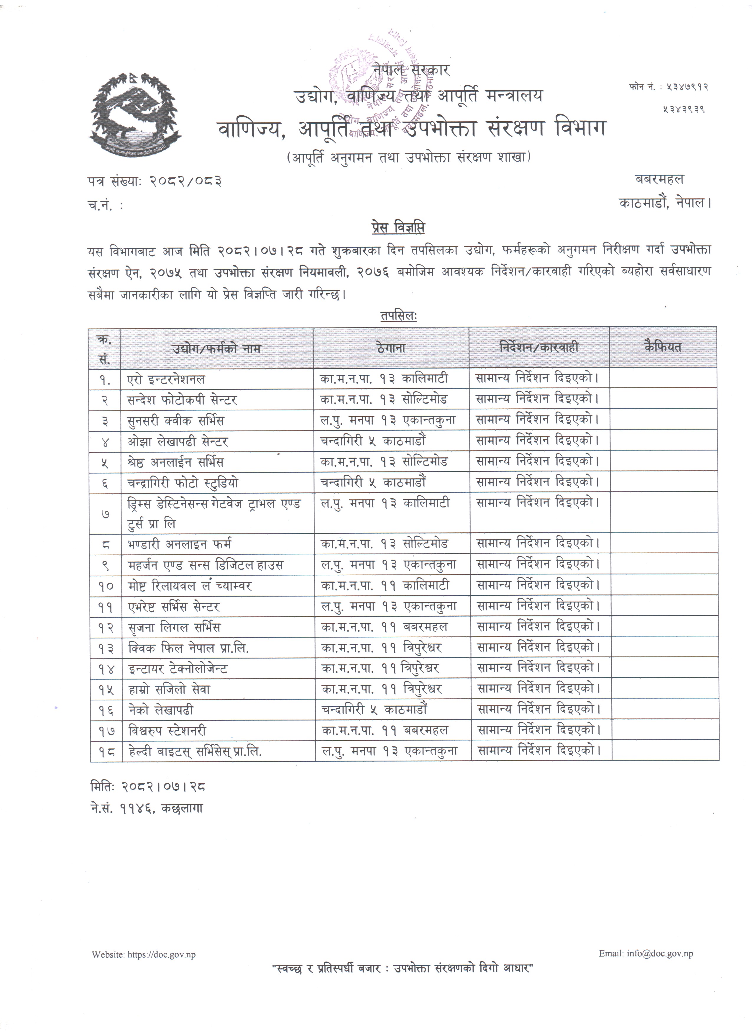 अनुगमन प्रेस विज्ञप्ति २०८२।०७।२८