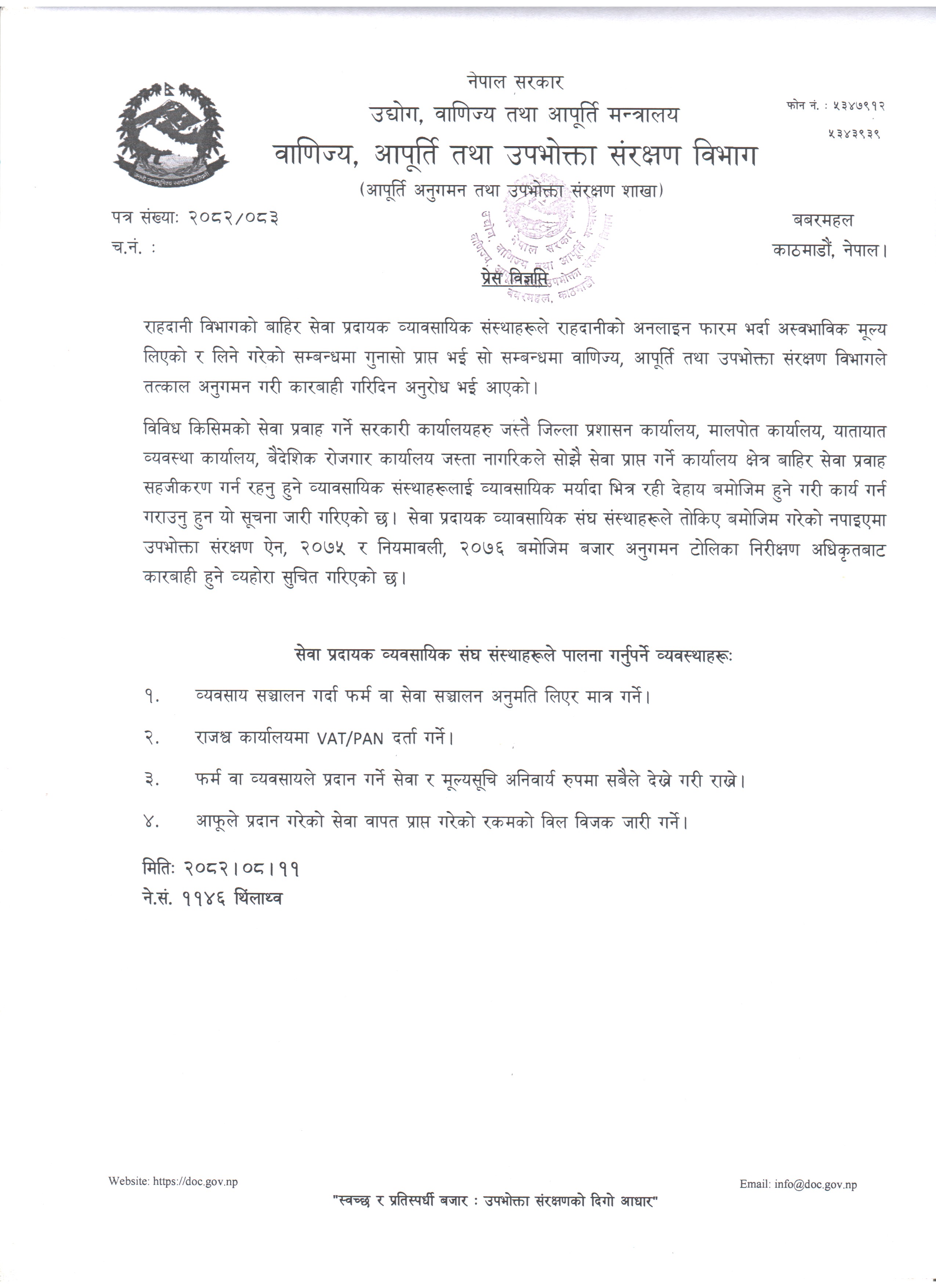 अनुगमन प्रेस विज्ञप्ति २०८२।०८।११