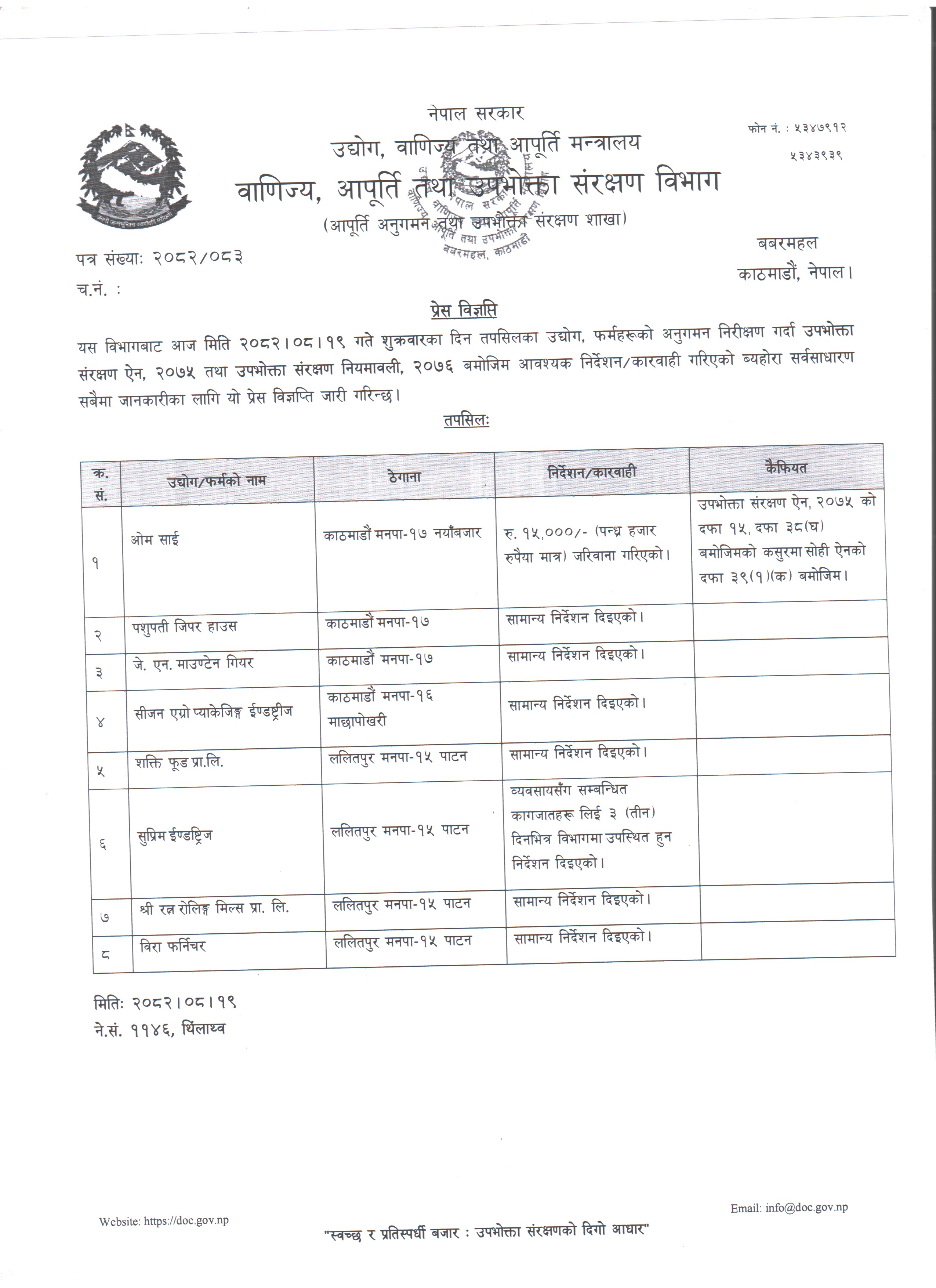 अनुगमन प्रेस विज्ञप्ति २०८२।०८।१९