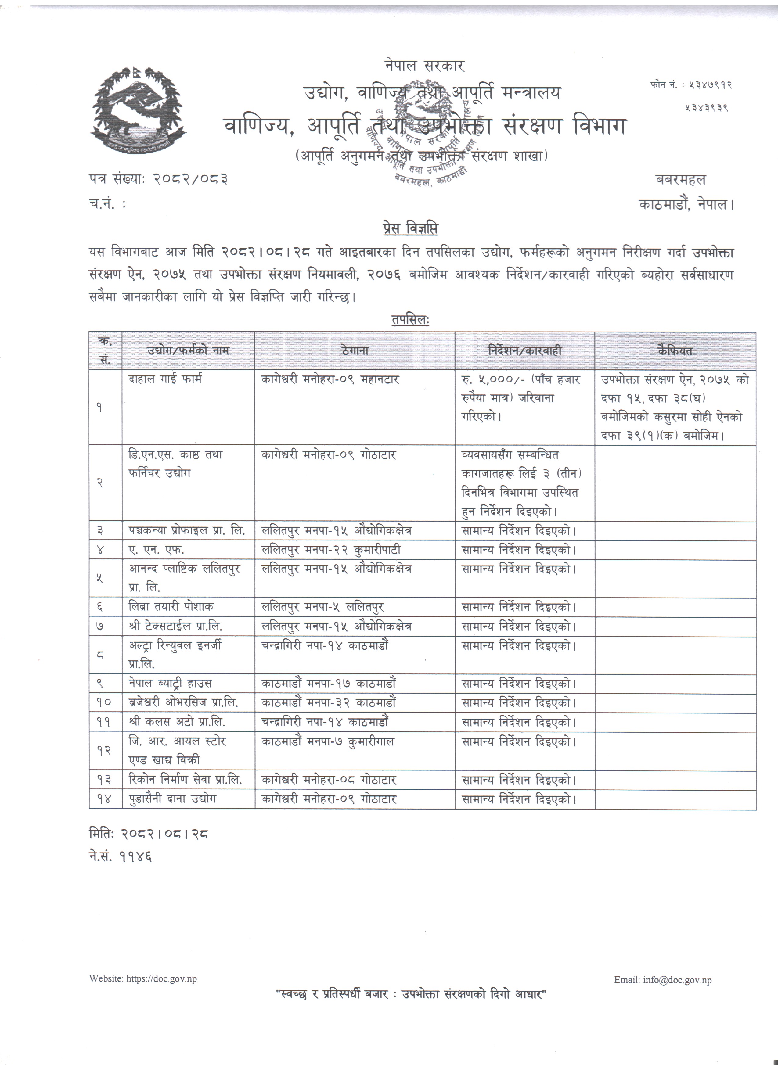अनुगमन प्रेस विज्ञप्ति २०८२।०८।२८