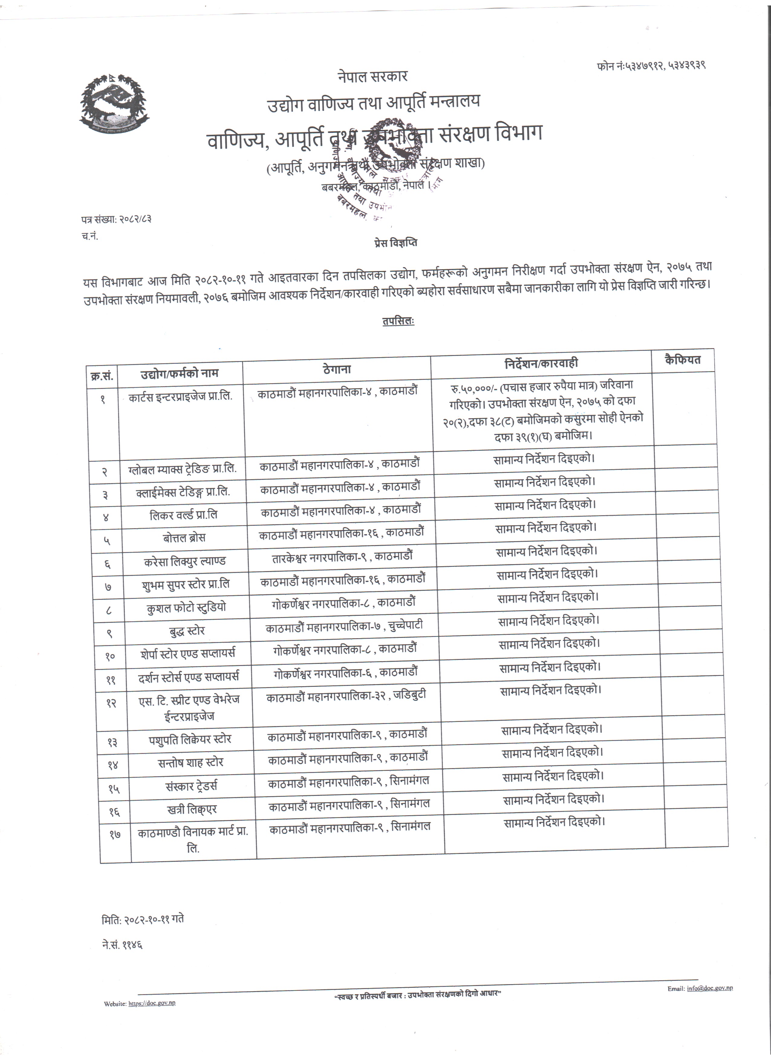 अनुगमन प्रेस विज्ञप्ति २०८२।११।२८