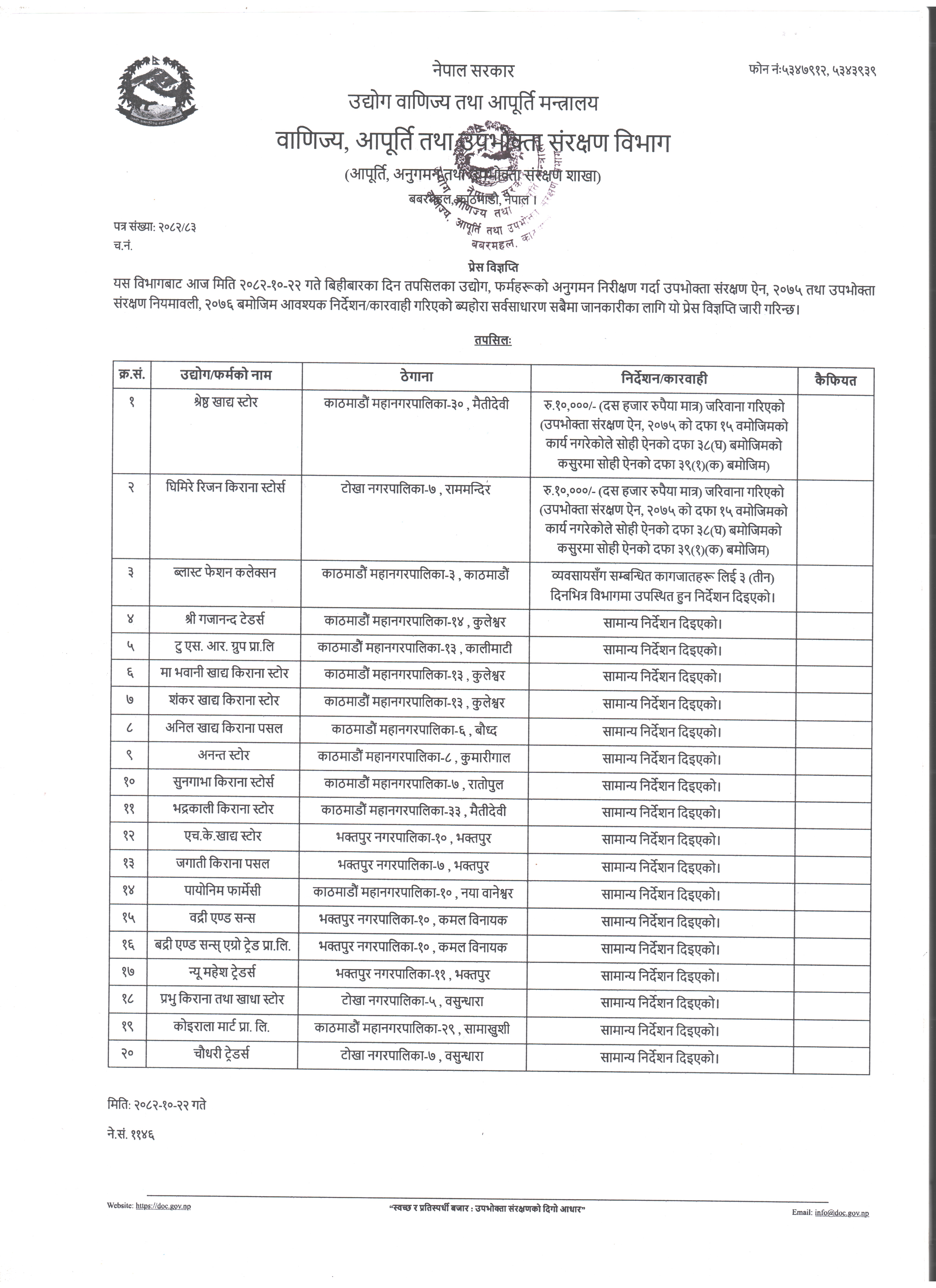 अनुगमन प्रेस विज्ञप्ति २०८२।१०।२०