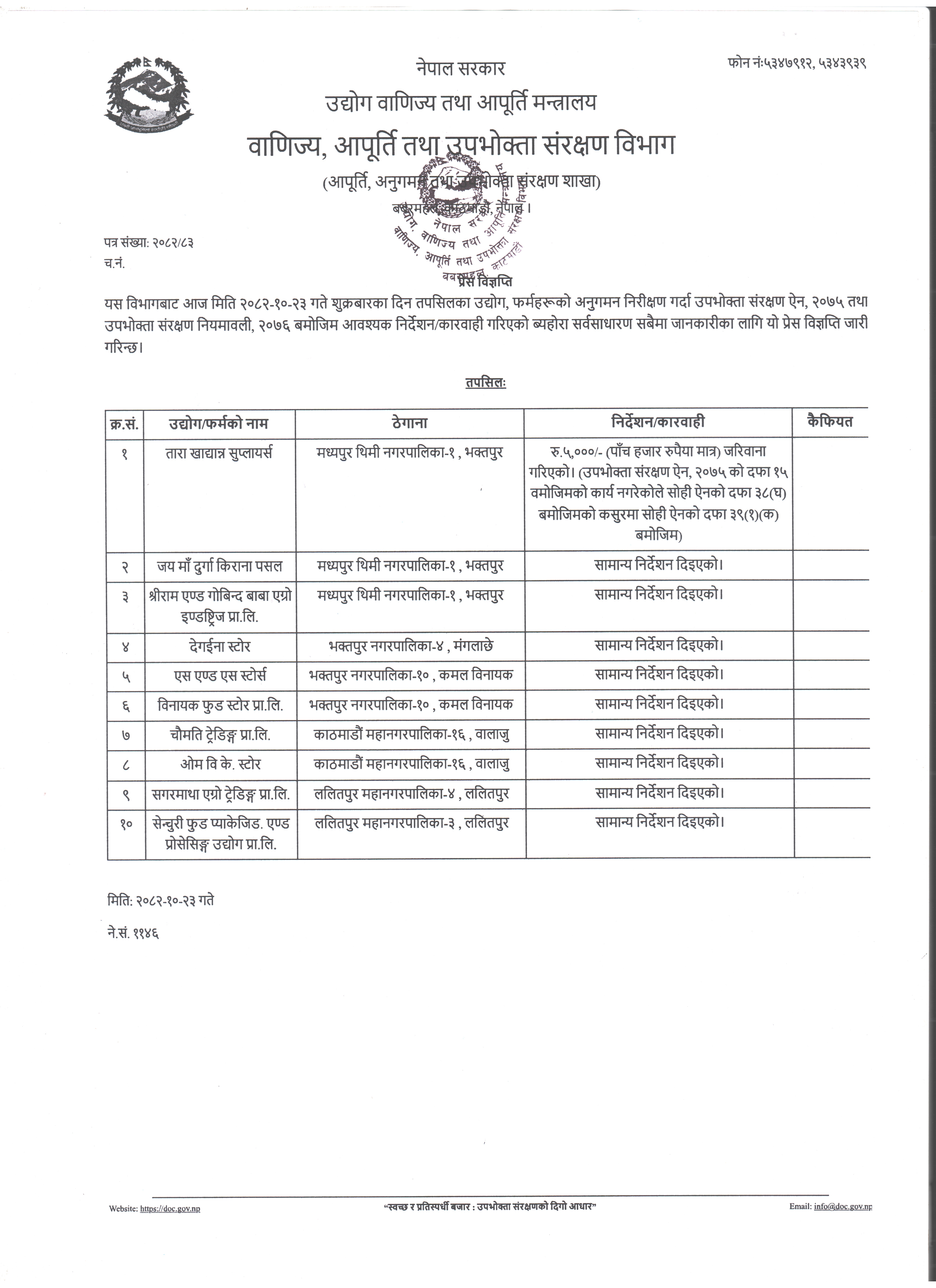 अनुगमन प्रेस विज्ञप्ति २०८२।१०।२३