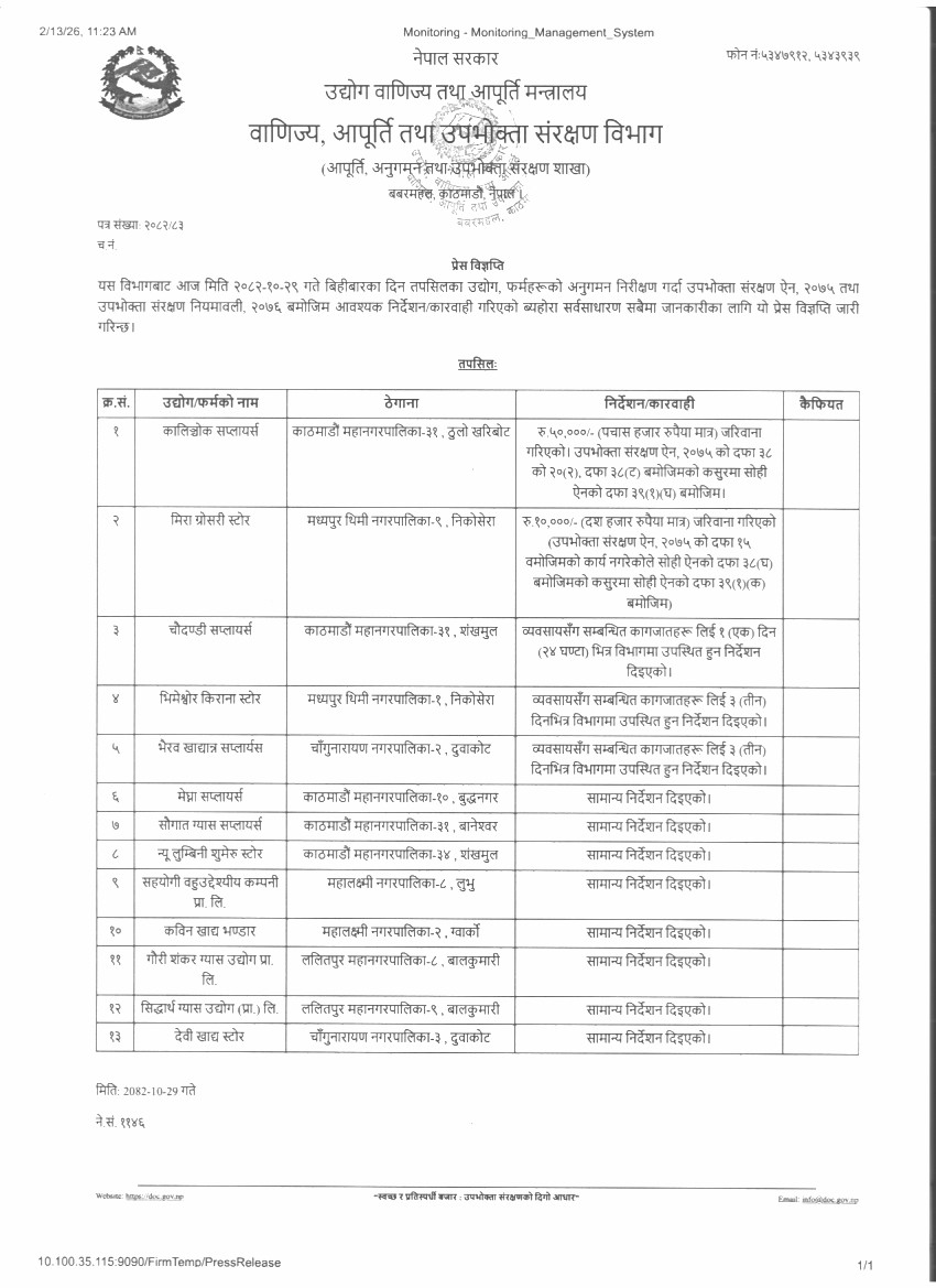 अनुगमन प्रेस विज्ञप्ति २०८२।१०।२९