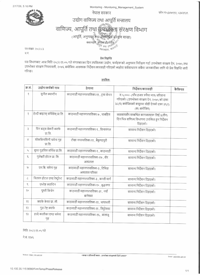 अनुगमन प्रेस विज्ञप्ति २०८२।११।०५