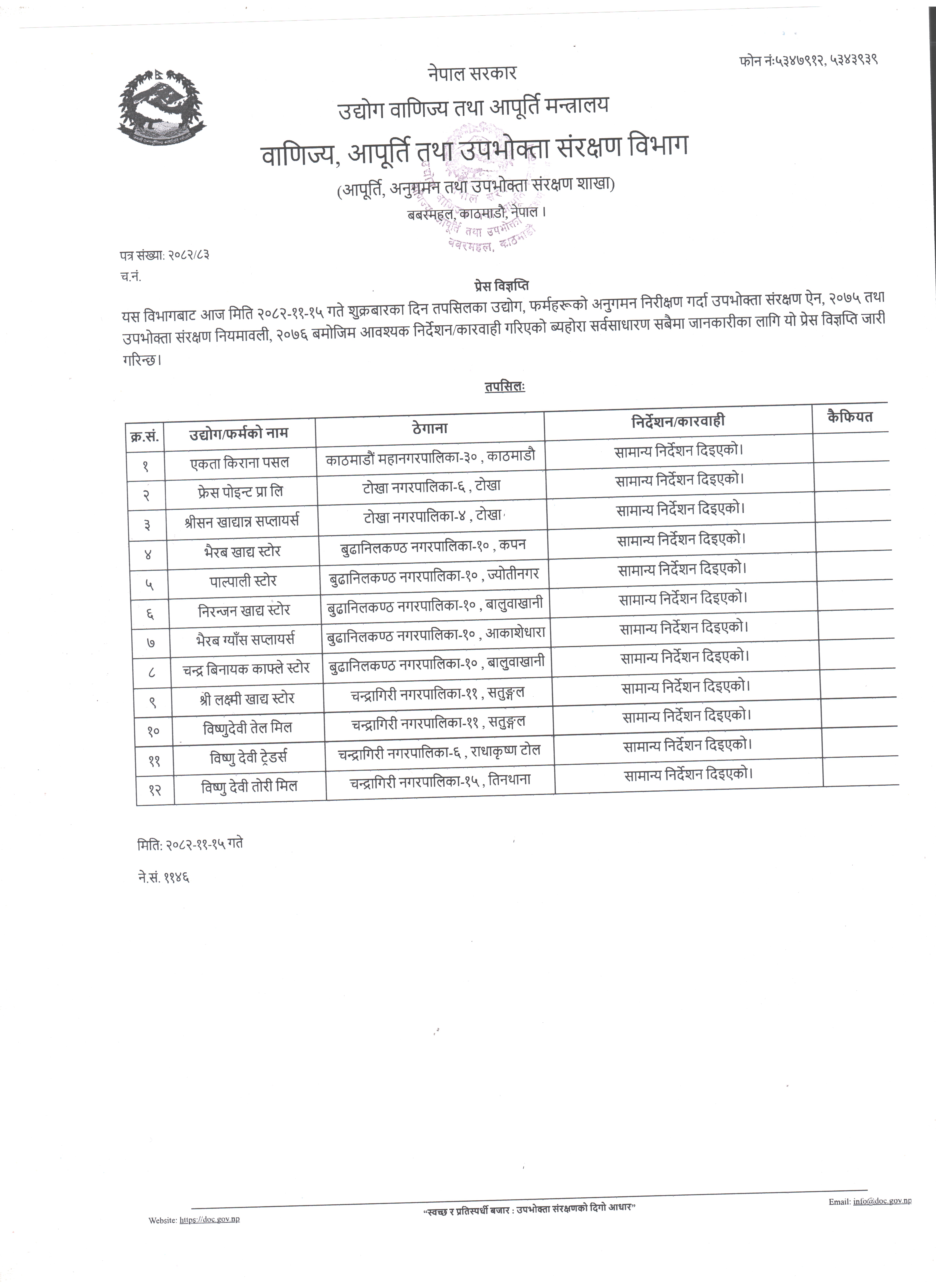 अनुगमन प्रेस विज्ञप्ति २०८२।११।१५