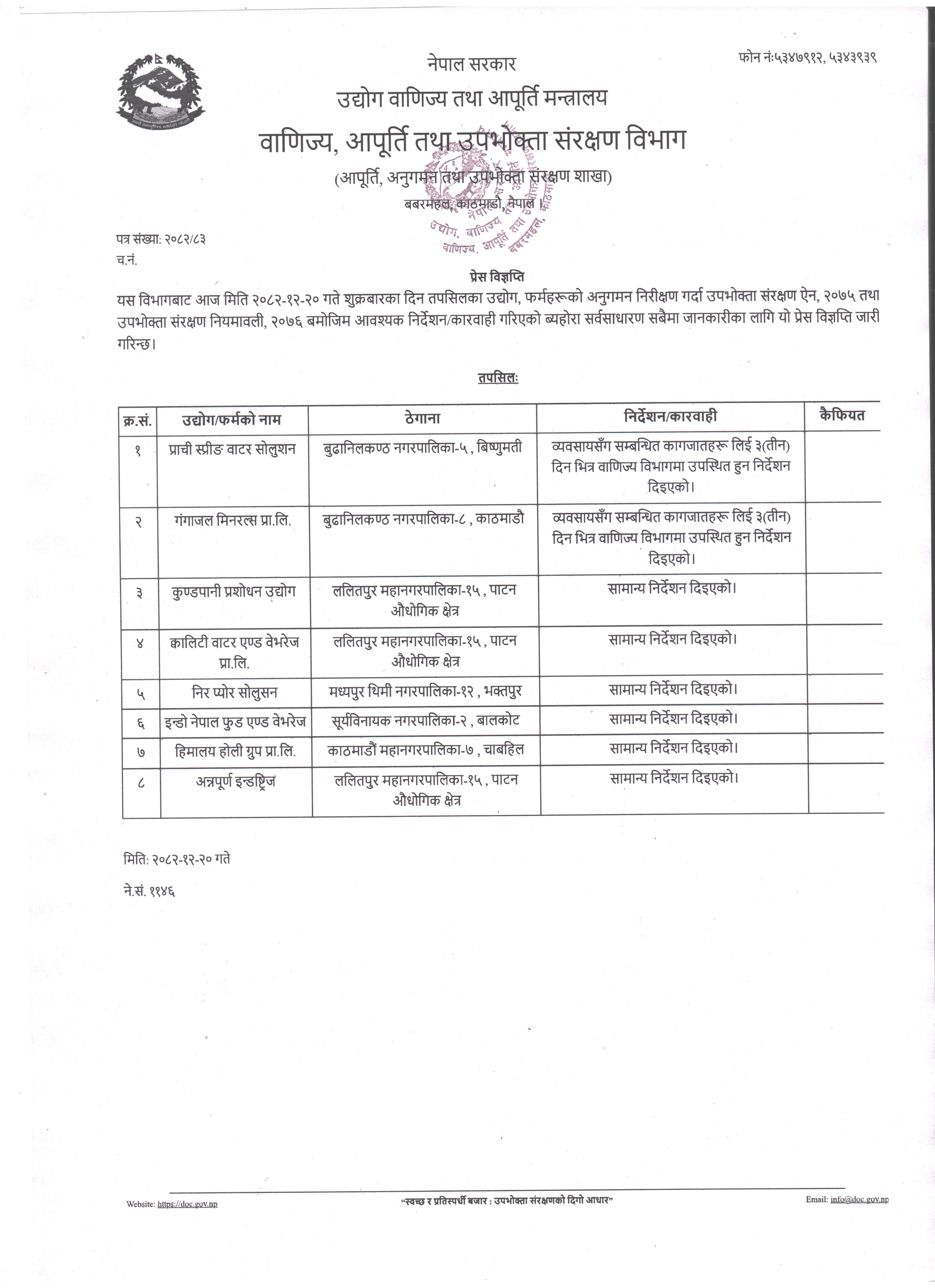 अनुगमन प्रेस विज्ञप्ति २०८२।१२।१९