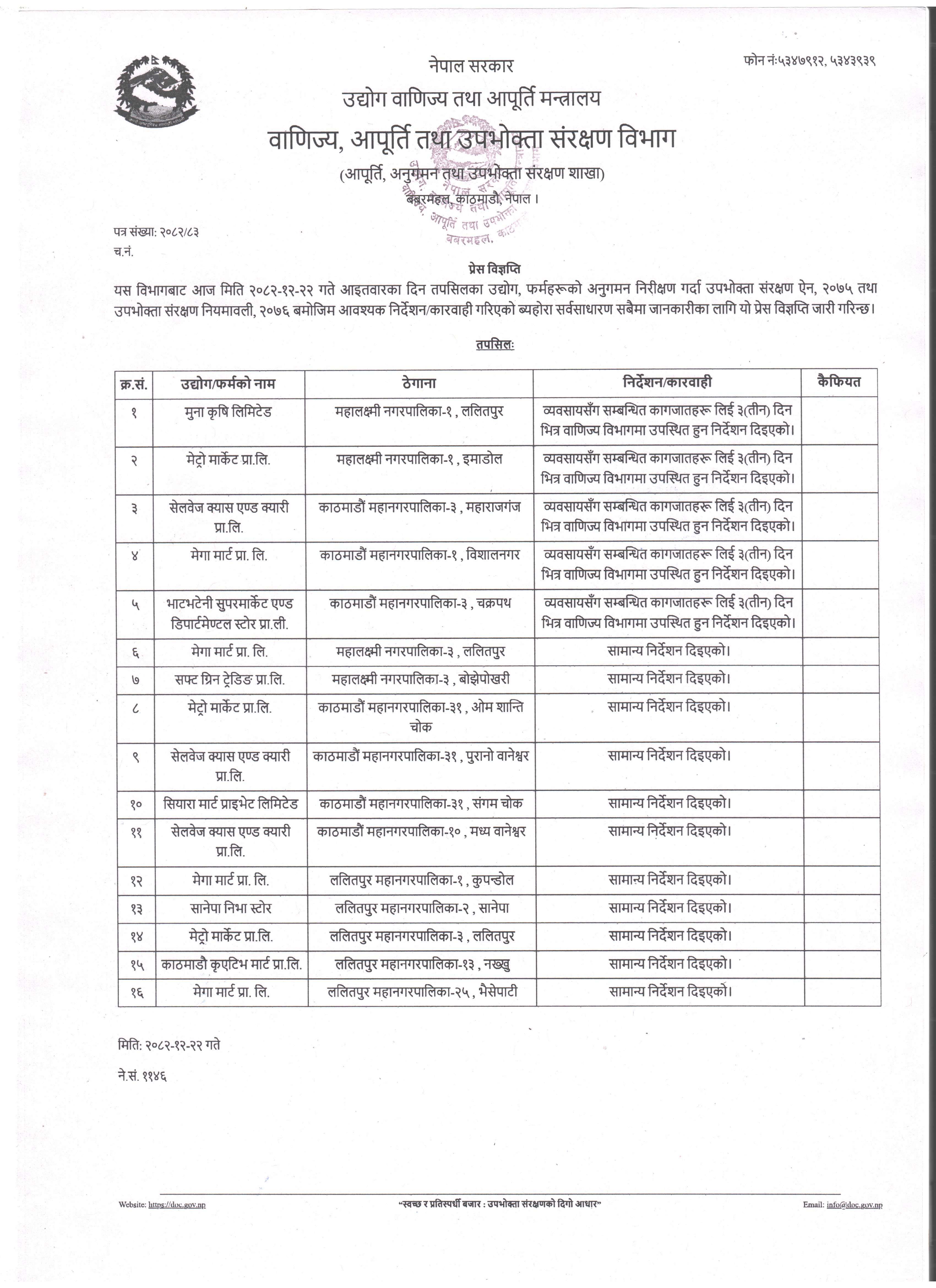 अनुगमन प्रेस विज्ञप्ति २०८२।१२।२२