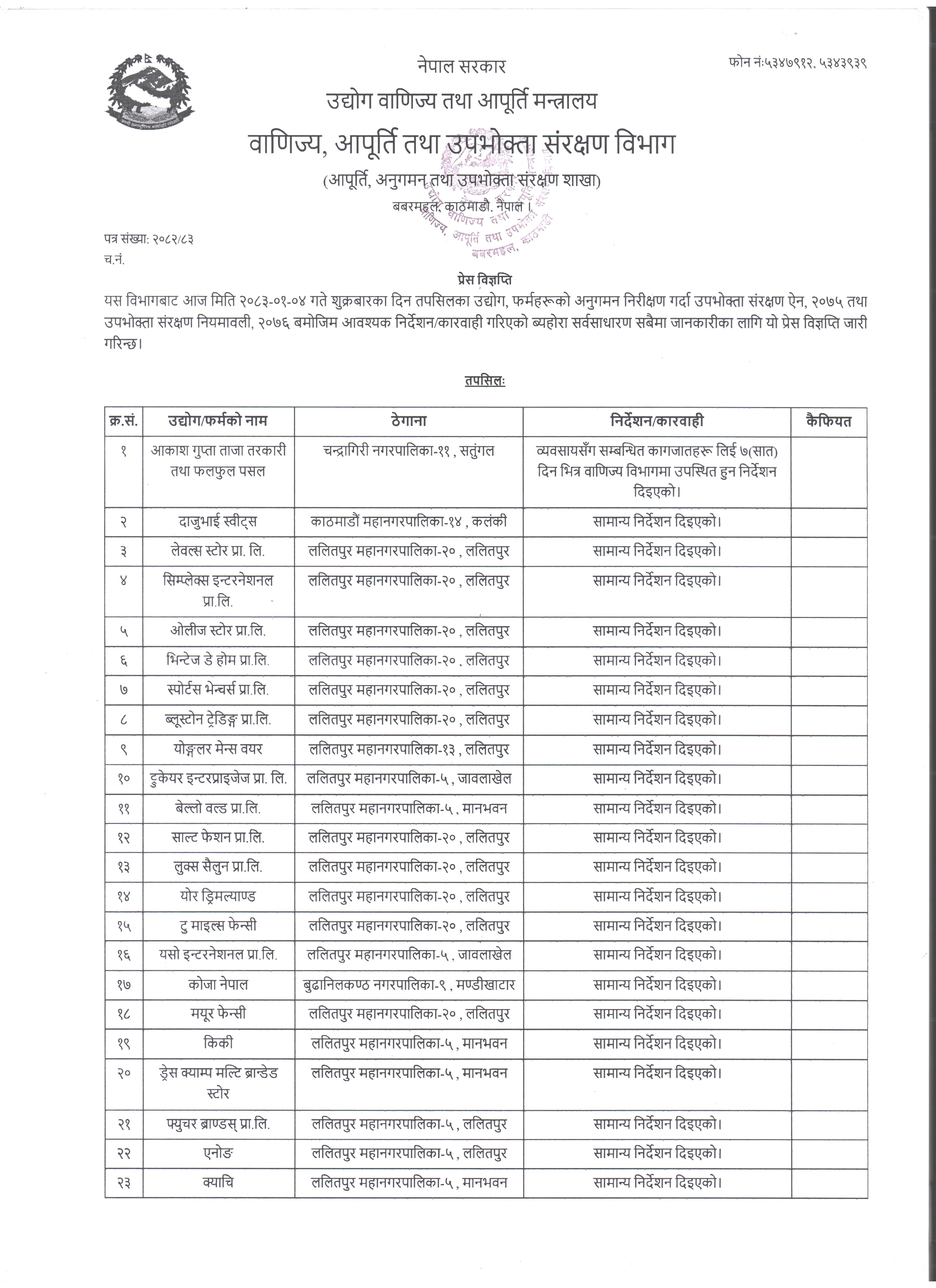 प्रेस विज्ञप्ति - खानेतेल, ग्यास र चामल लगायत उपभोग्य वस्तुहरुको मूल्य वृध्दि तथा आपूर्ति सम्वन्धमा