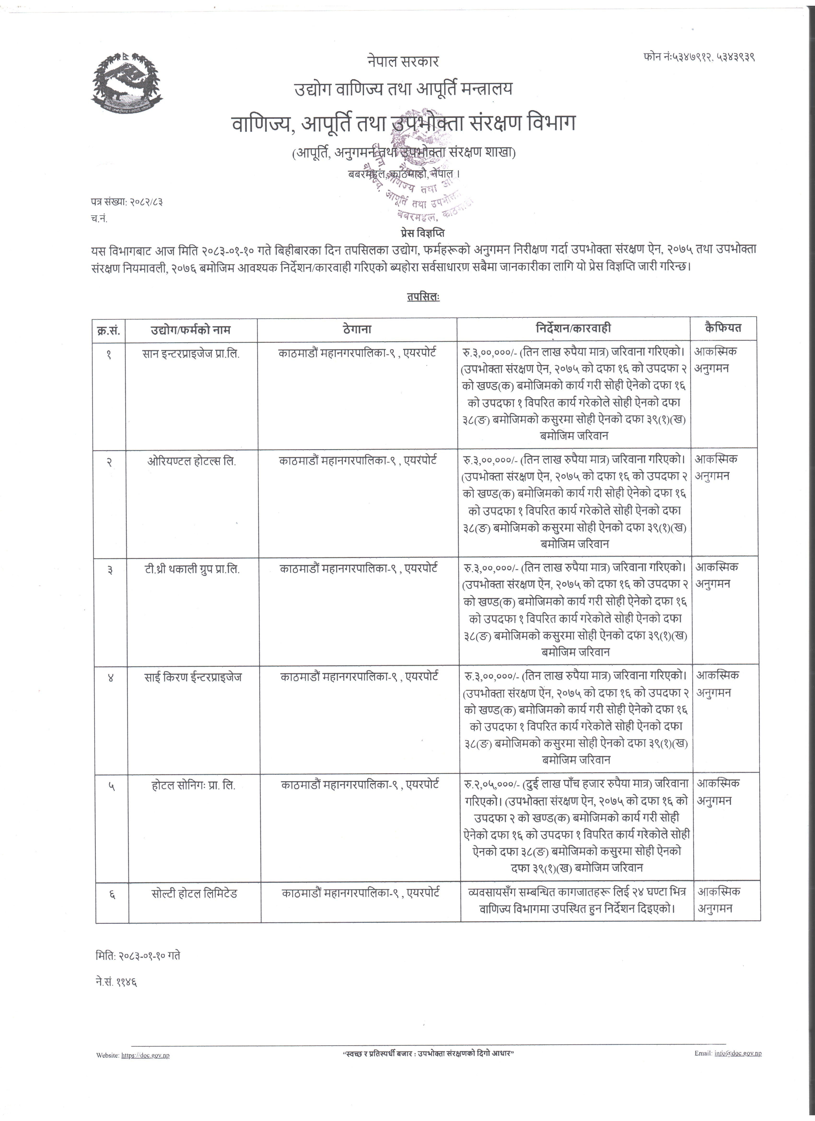 अनुगमन प्रेस विज्ञप्ति २०८३।०१।१० (आकस्मिक अनुगमन एयरपोर्ट क्षेत्र)